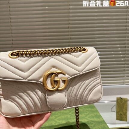 GUCCI / GG marmont cowhide cream white size: 26*14m