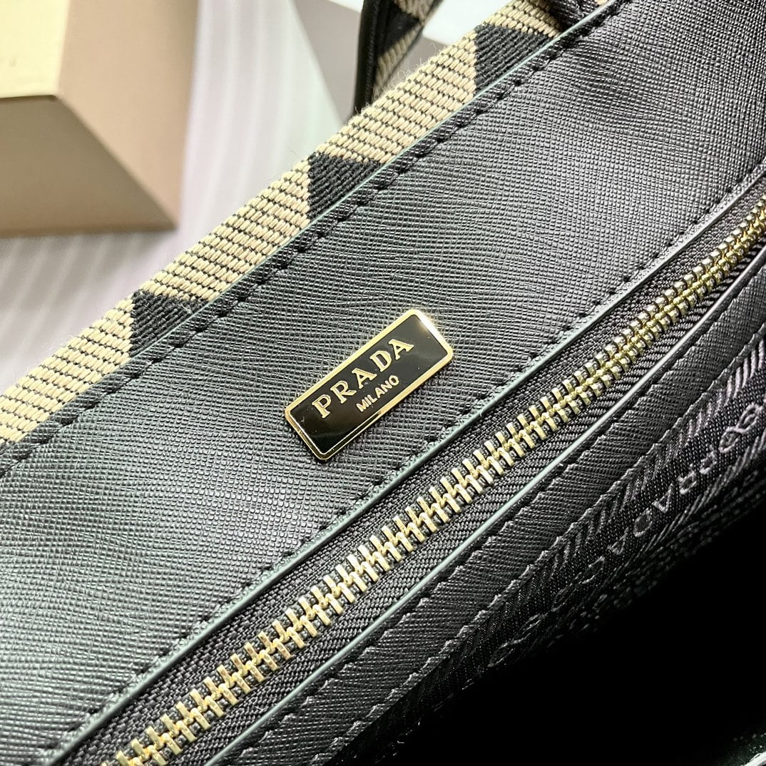 𝐏𝐫𝐚𝐝𝐚 cowhide Saffiano tote bag with leather strap black 1BA270 size: 33*25*11cm