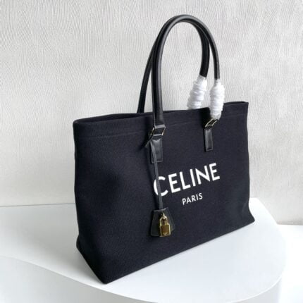 CELINE horizontal printed canvas and calfskin handbag Black Size: 44*32*16cm