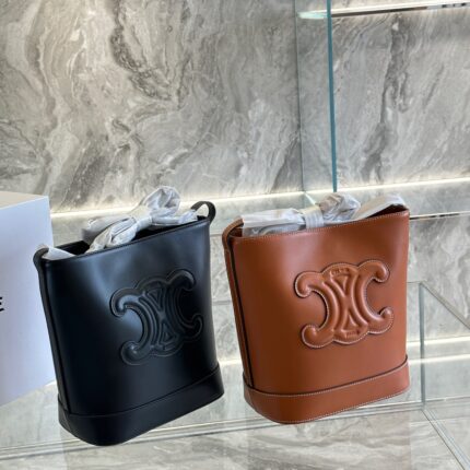 CELINE Caramel brown /Black bucket bag Size: 22*27cm