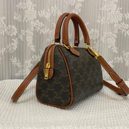 CELINE Leather Boston bag TRIOMPHE CANVAS yellowish-brown 3116 Size:19.5*14*7.5 cm
