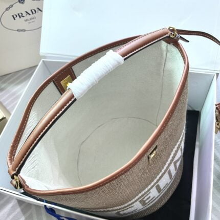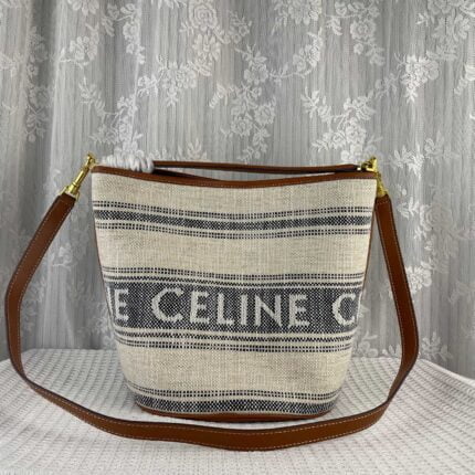 CELINE Mini jacquard stripe fabric cow leather bucket bag with little wallet Size:23*25*23CM