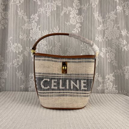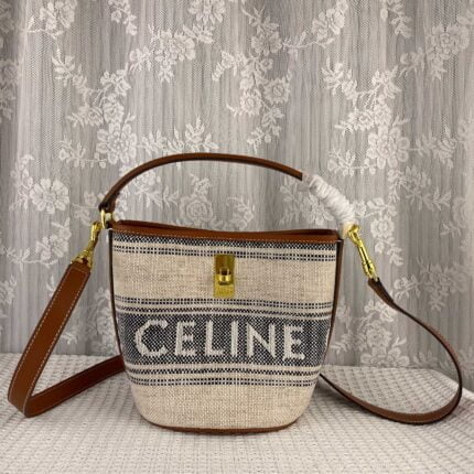 CELINE Fabric cow leather mini bucket bag Size:16*18*16cm