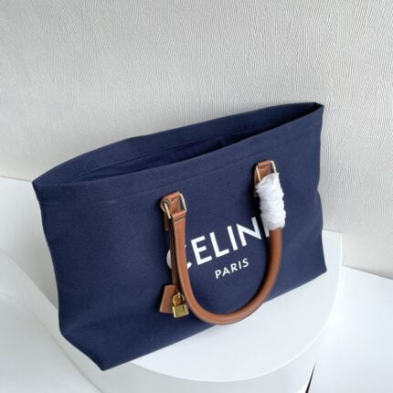 CELINE horizontal printed canvas and calfskin handbag Blue Size: 44*32*16cm