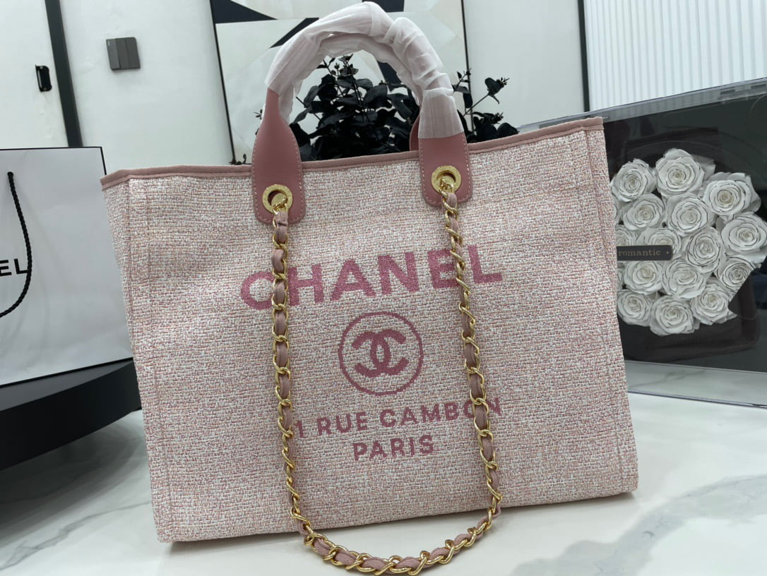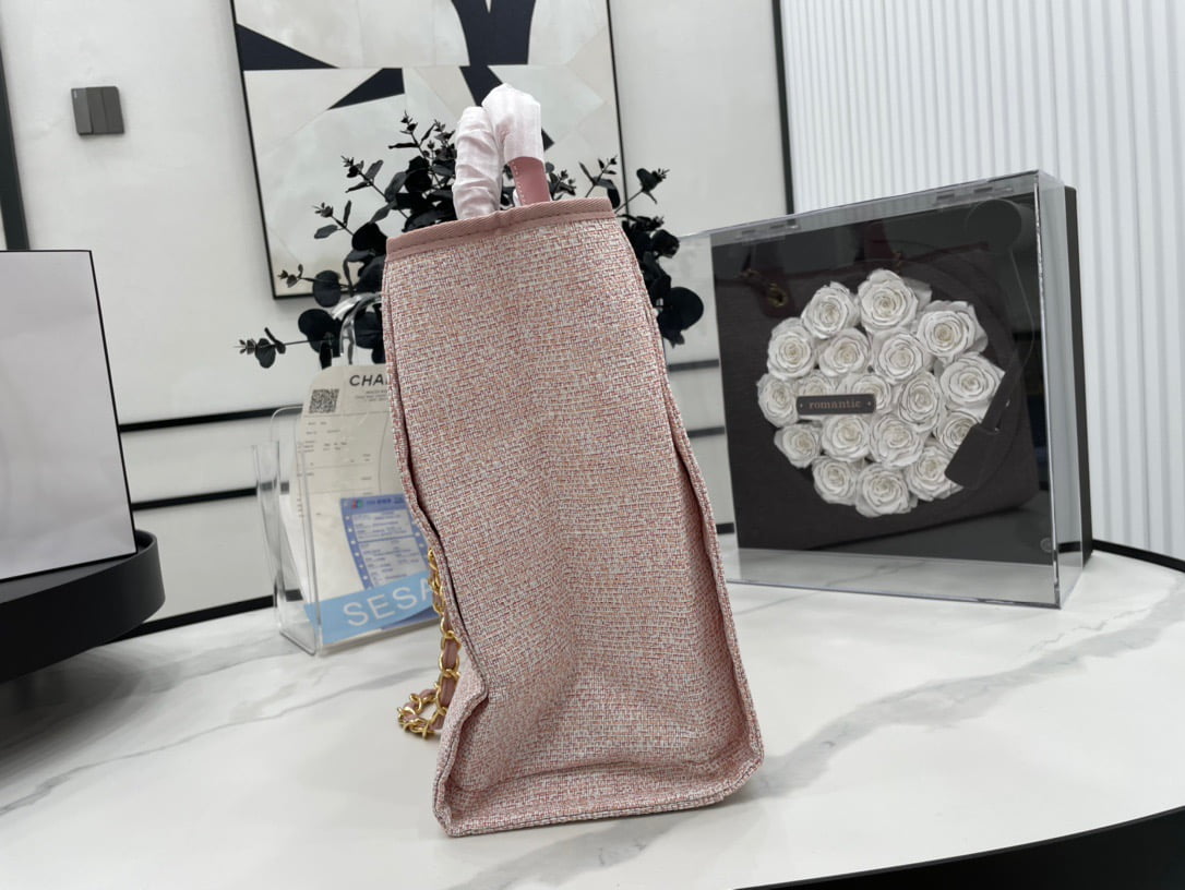 66941 Pink light Gold remember to bring her when you travel! chanel shopping bag spring and summer new color! The beach bag shopping bag is made of canvas material, simple and casual design is popular, and the capacity is large enough and light and fashionable suitable for daily use, more suitable for business travel and gentle leisure collocation, practicability is very high! Size: 38cm