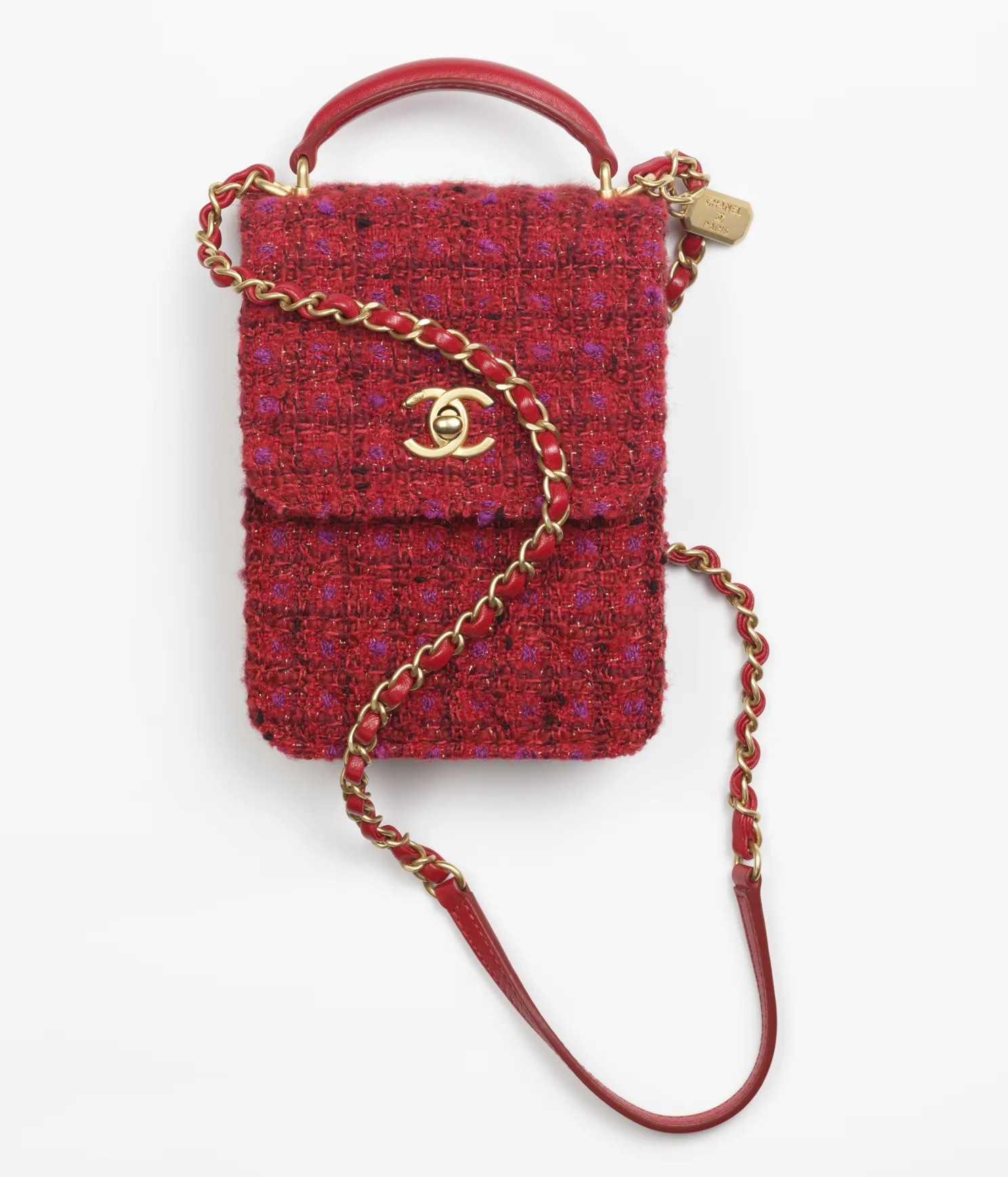 Home BAGS CHANEL CHANEL / MINI FLAP BAG WITH TOP HANDLE Wool Tweed, Lambski & Gold-Tone Metal Red, Purple & Black Ref. AS4285 B13746 N7491
