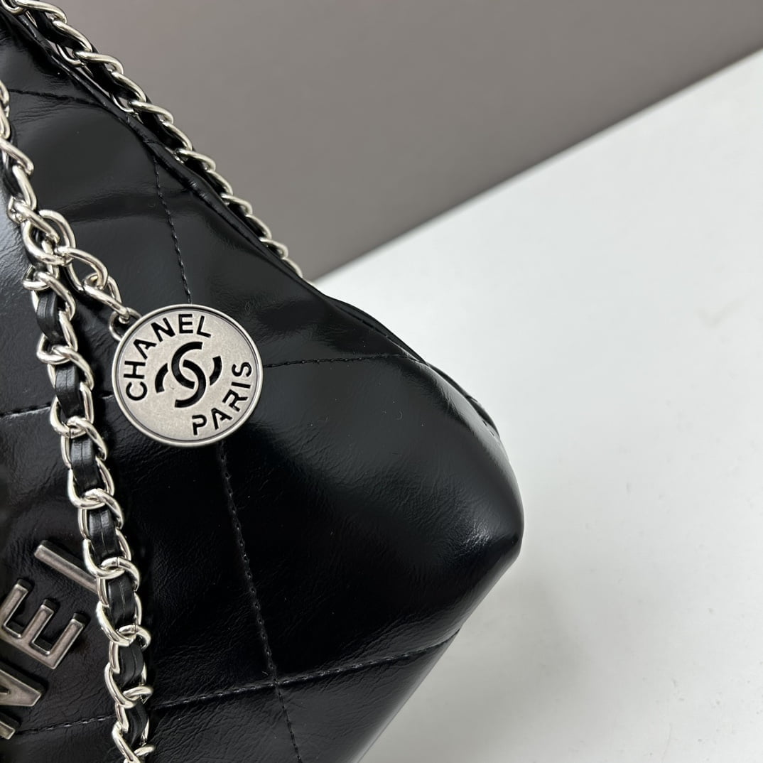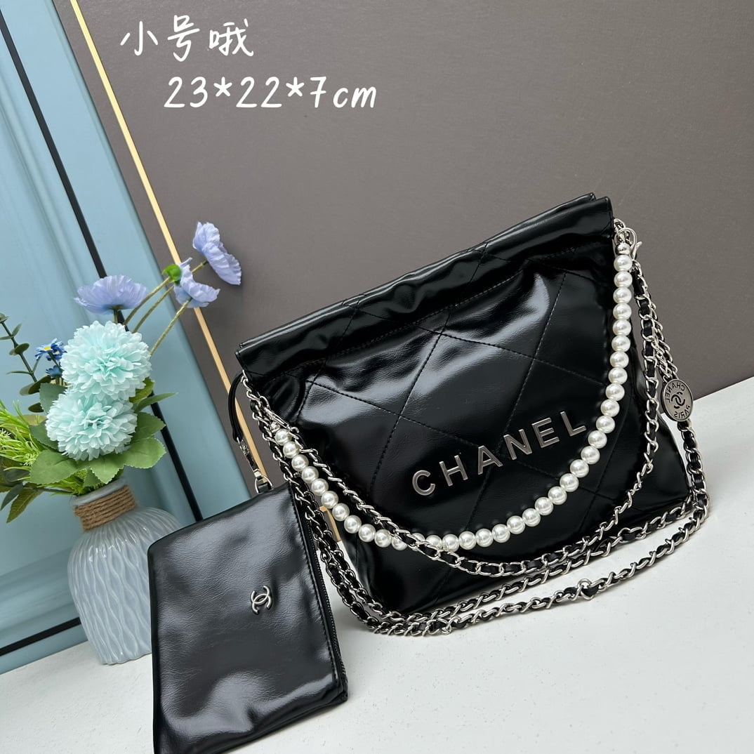 Home BAGS CHANEL CHANEL Pearl garbage bag black with sliver hardware size: 23*28*22*7cm