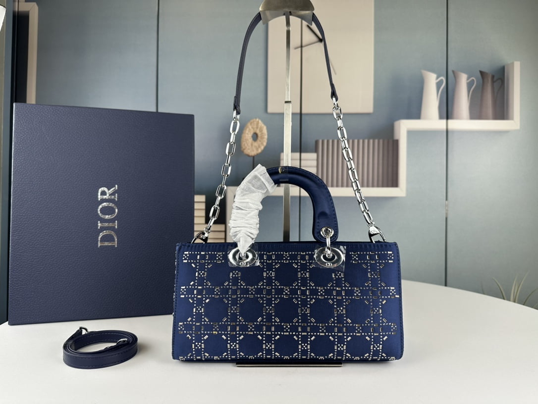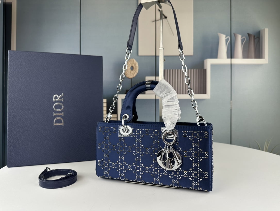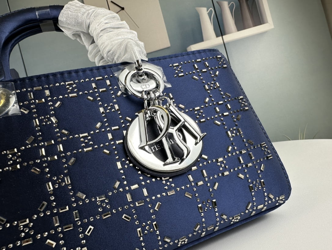 Horizontal hot diamond Dior@Satin diamonded Diana bag 💗 silk flashes different colors under different angles of light 😘, the three-dimensional sense of the transition of light and dark makes the satin a higher grade 💫 ubiquitous exposure rate, Internet celebrity hand a 🎀 size 26x13x6, model No. 2320