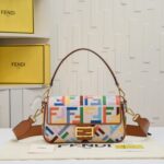 FENDI latest baguette bag: very summery; Colorful rainbow 🌈F embroidery colors. This Fendi Baguette is sure to be a trendy item this summer! It looks great on the top; Attendance is also particularly high; It’s absolutely fine for a concave shape. Very lightweight. And its capacity is also very powerful; Easily meet your daily needs. With a short strap and a wide shoulder strap; Can be carried on one shoulder and crossbody. Very versatile. It’s easy to wear no matter what style you have. Carry it and you’ll be the brightest goddess in the crowd. Model F2029 Size 26-5-15CM