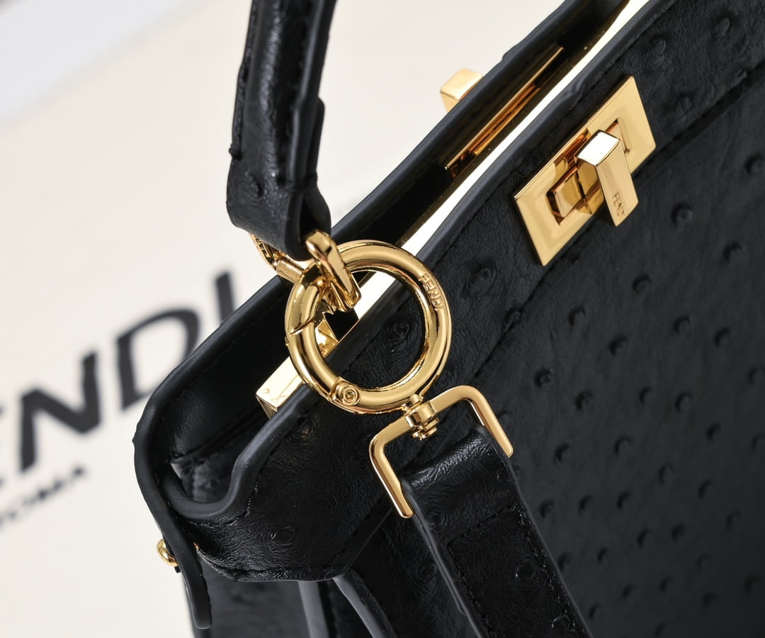 Both compartments are opened and closed with a classic PEEKABOO turn lock.