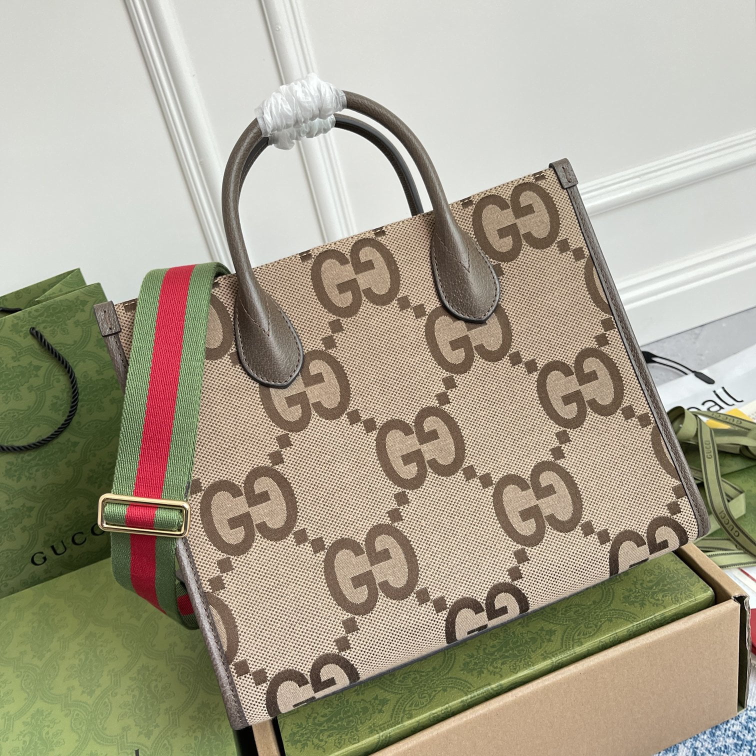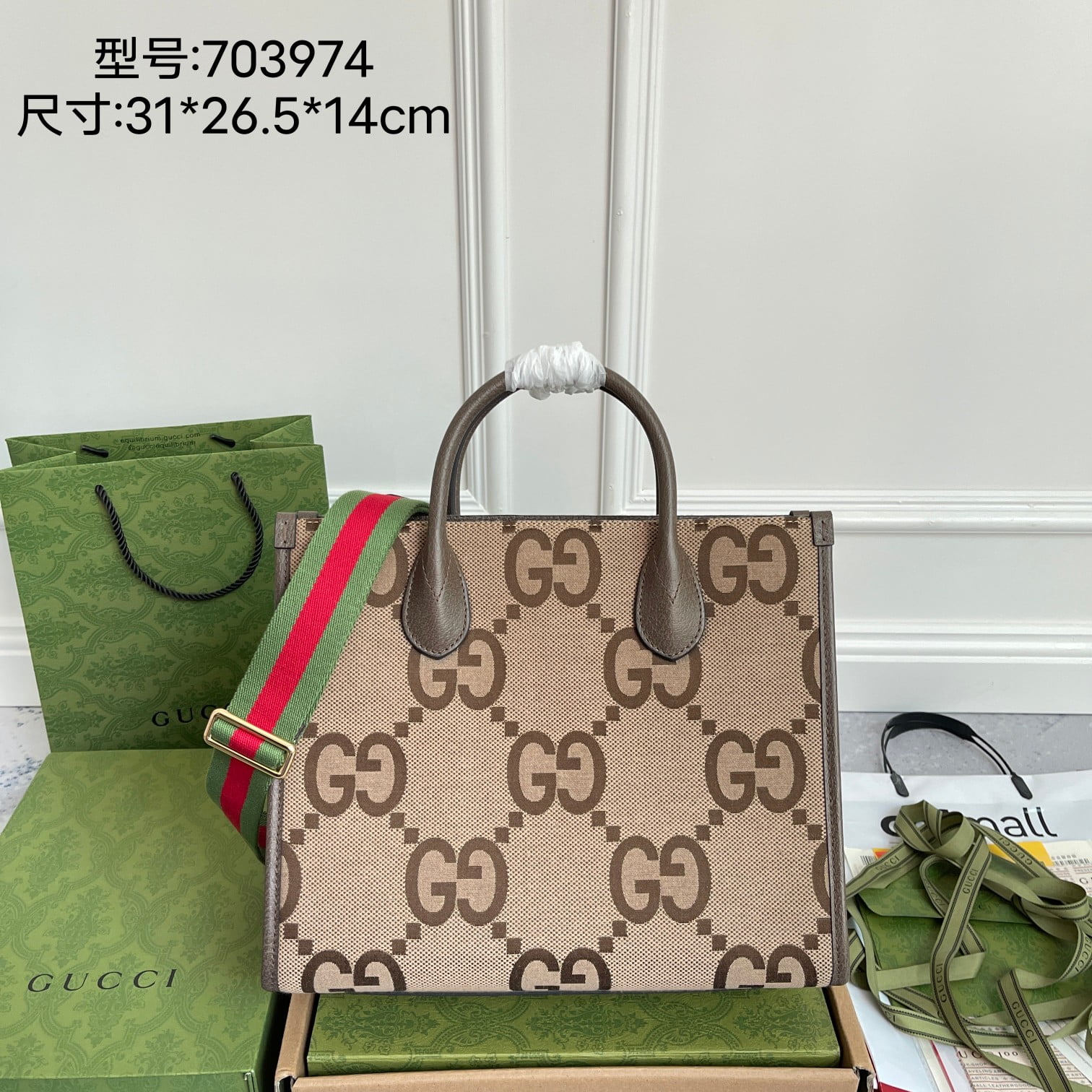 Gucci 703974 Apricot large g cloth tote bag