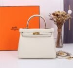 Hermes Kellyย Milkshake white Pure leather fabric wear-resistant