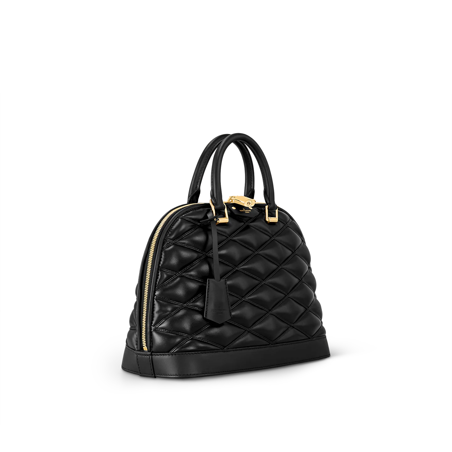 Made from lambskin featuring the House’s celebrated malletage crisscrossing pattern, the Alma PM is an elegant and practical handbag. Its signature shape is embellished with chic details like a gold-color padlock, leather key bell, and rolled-leather top handles. A removable and adjustable strap enables cross-body and shoulder wear.