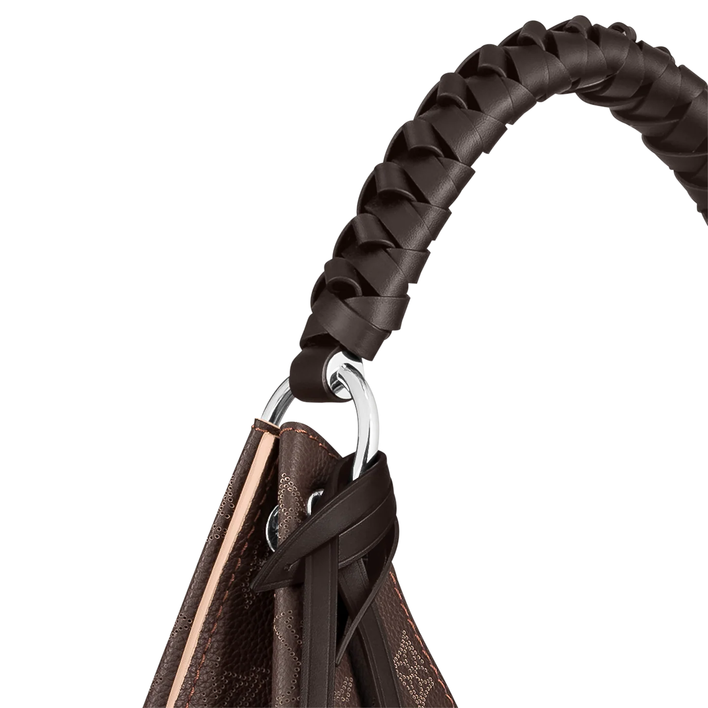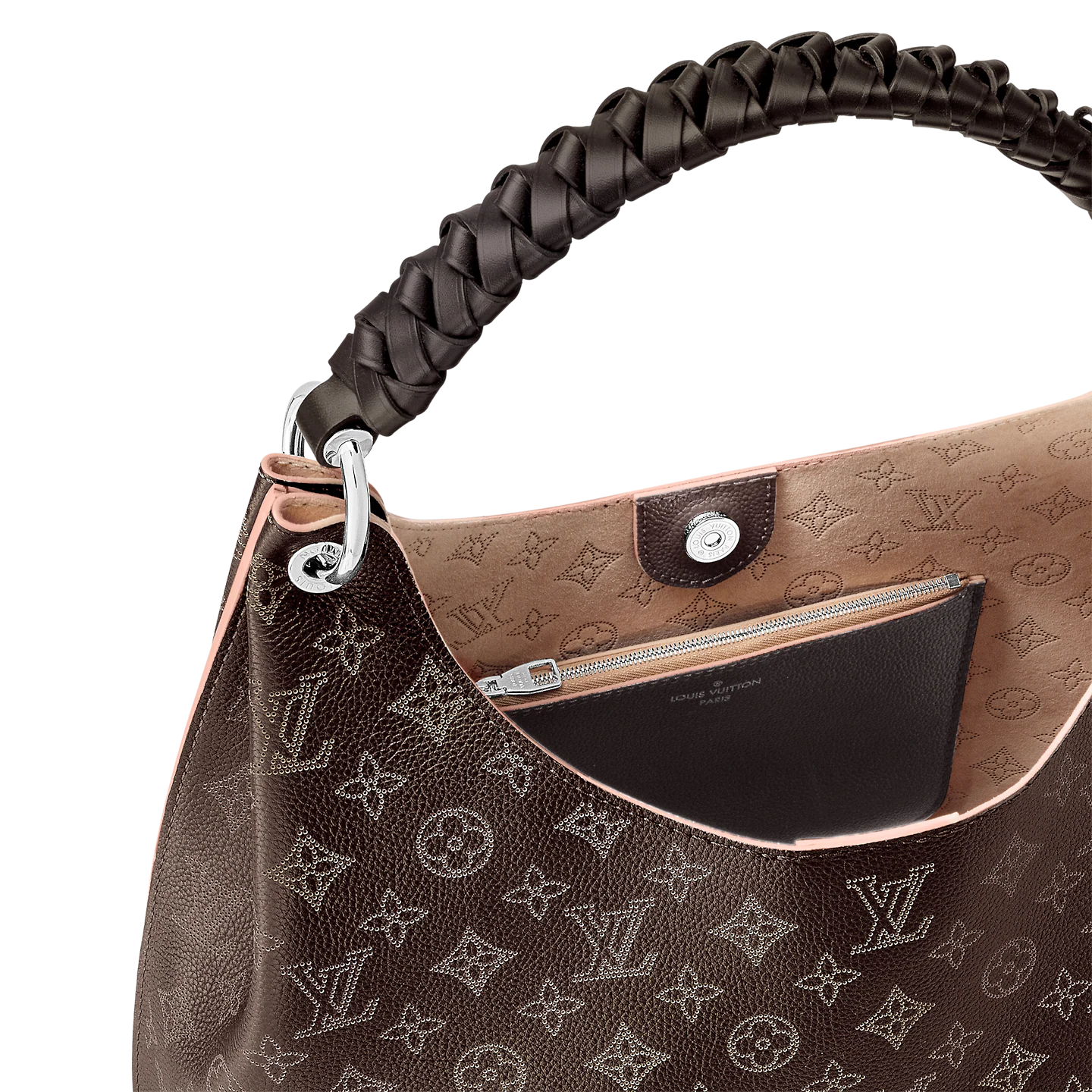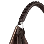 For Fall 2020. the contrasted perforation is offered on the Carmel hobo bag in a sophisticated chocolate color. enhanced by a luminous contrasted cachemire tone. This lightweight yet roomy bag features a braided-leather handle for comfortable shoulder or elbow carry.