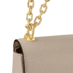 Made from Epi leather and accented with the gleaming gold-color LV Twist lock, this Twist PM hand bag now comes in an essential new color that’s easy to match: a warm and elegant gray. This compact bag is unexpectedly roomy thanks to its cleverly designed “wave” base.