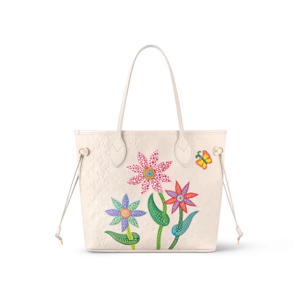 The LVxYK Neverfull MM gets a feminine crafted touch with the Flower theme of the Louis Vuitton x Yayoi Kusama