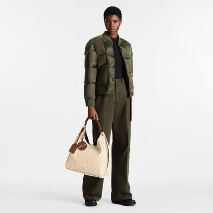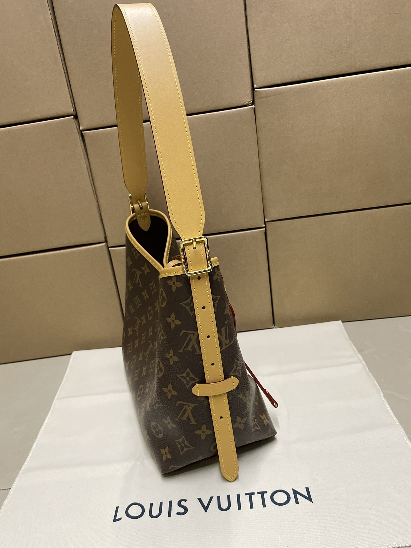 The Carmel hobo bag is a spacious. lightweight style in Mahina calf leather with Monogram perforations. The supple leather and