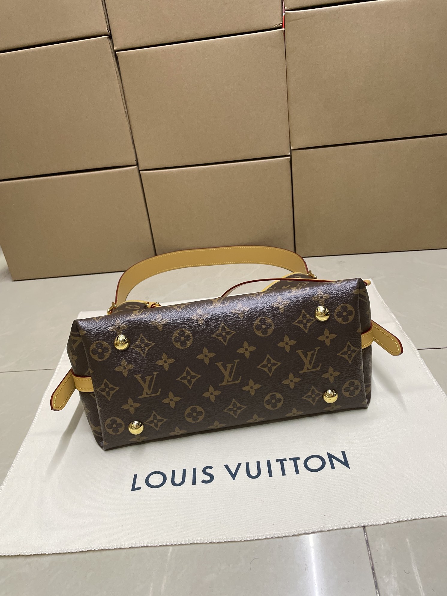 Fashioned from supple Monogram Empreinte leather with rounded top handles as well as a removable shoulder strap, the compact Neo