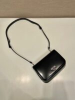 The new 🎉2vd061🎉2023 autumn/winter fashion show 🎉 this one is in glossy leather. Can be worn on the neck. The signature slanted side structure creates a simple profile that flatters the body. Removable adjustable leather shoulder strap with clamshell adorned with hot print logo. The upper body effect must be cool, male and female share length 18x height 12.5x bottom 2.5cm