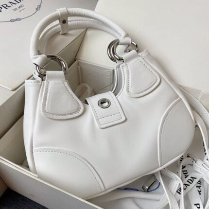 Prada Belgian calfskin shoulder bag white 1BD048 size: 20*14*8CM