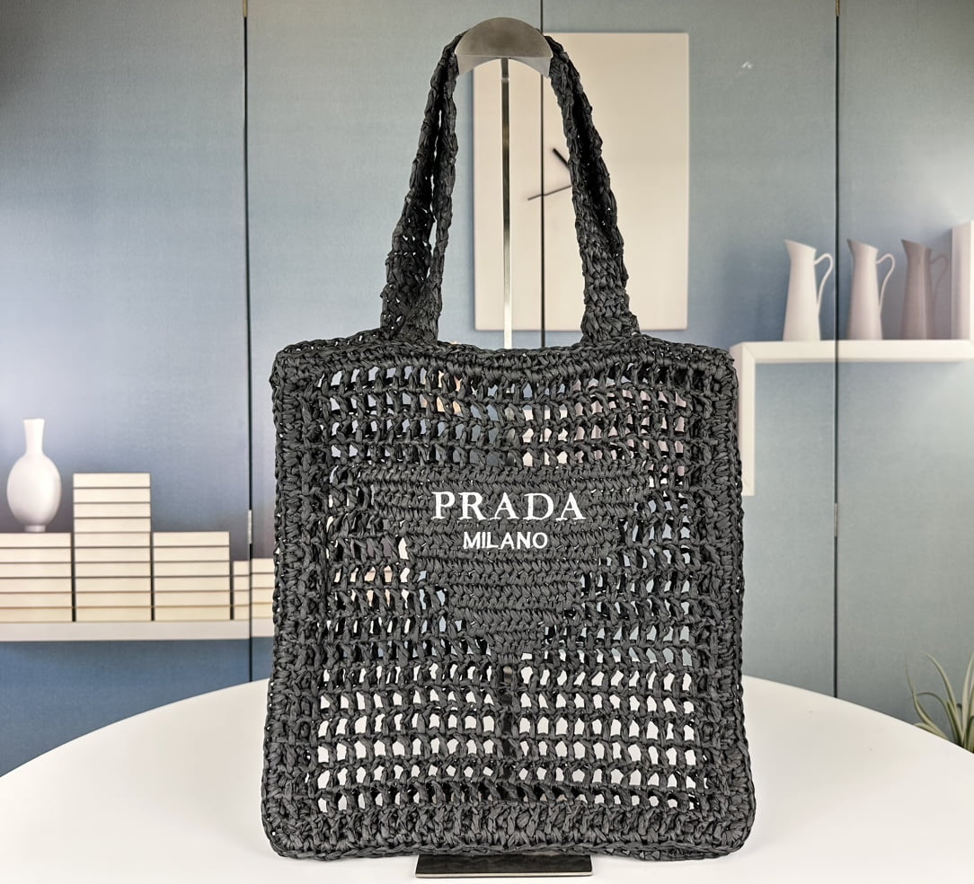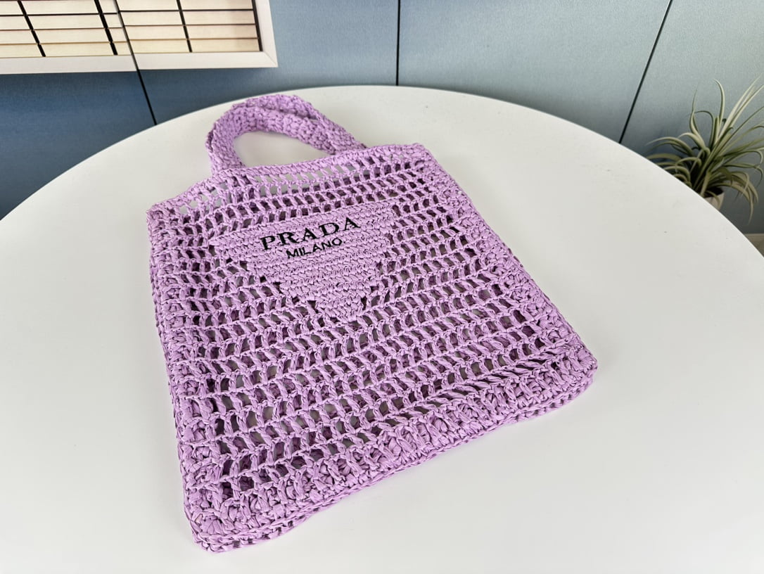 Raffia fiber Tote bag 🔥🔥🔥 Soft deconstructed Tote bag made of raffia fiber, light and natural material to express the summer mood of the iconic Prada triangle logo refresh, decorate the front of the bag, the center is decorated with embroidery engraved logo, reminiscent of the brand style, a must-have summer sunrise street, beautiful and lightweight, 😍 Let the babies get their hands on 👏👏👏 Size: Height 38x width 36x base 3. Model: 1BG393
