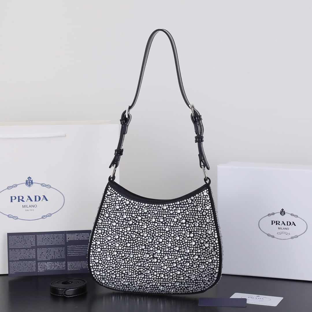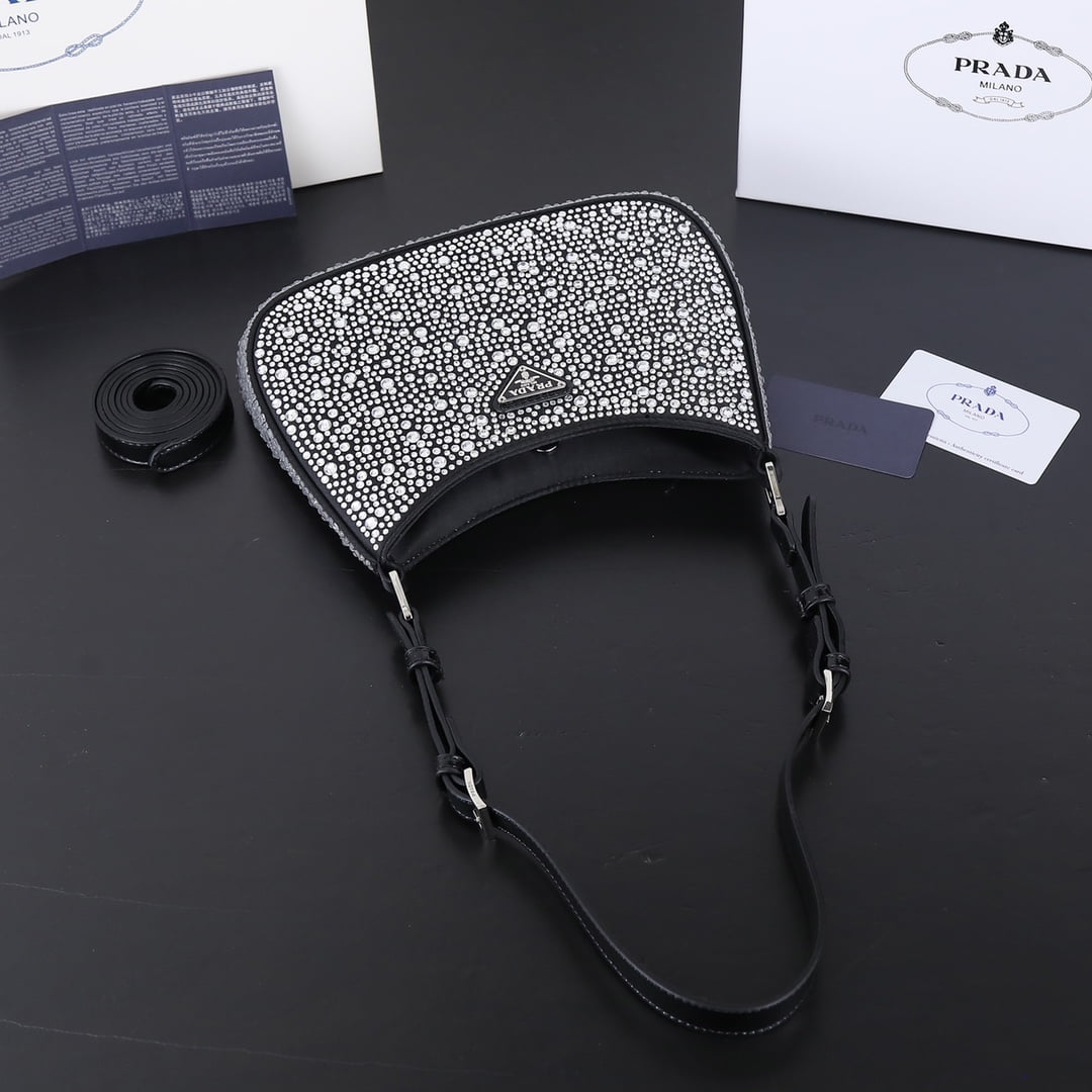 Model 8801, size 22 ’18’ 5. Prada Ss21 new sparkling rhinester full of diamond Hobo bag Wow click! The whole bag is studded with flash diamonds Prada Hobo bag under the light BlingBling flash diamonds, flash to the eye! Too beautiful ah believe me, carrying it to shop at night is very suction-suction-ball, head rate is particularly high where to get all kinds of praise this flash diamond bag is also particularly good to wear, can be fairy can be cool, what occasions are suitable, especially to participate in Prada with the dress, simply beautiful wow