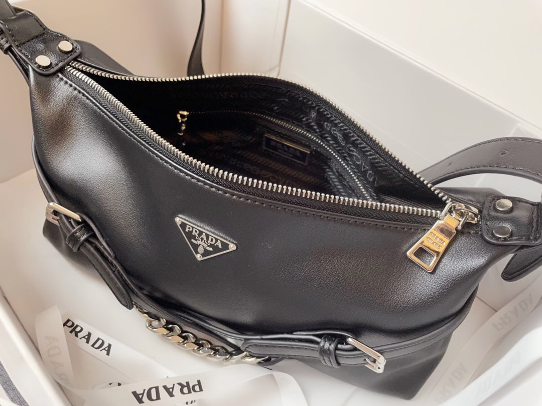 Prada leather Underarm bag black 1BA381 size: 22.5cm