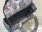 The five-compartment embroidered Magic Garden handbag combines classic elegance with a stylish look. Crafted in denim fabric, the entire body is decorated with multi-coloured diorjardinmagique pattern embroidery, drawing inspiration from the wizarding world to display charming pastoral patterns. The front is decorated with the christian dior paris logo, and the light gold finish metal di.or pendant raises the tone and adds a touch of inspiration to the exquisite silhouette. Medium style with detachable double-sided embroidered wide shoulder strap, portable or crossbody. Dimensions :24x20x11 cm