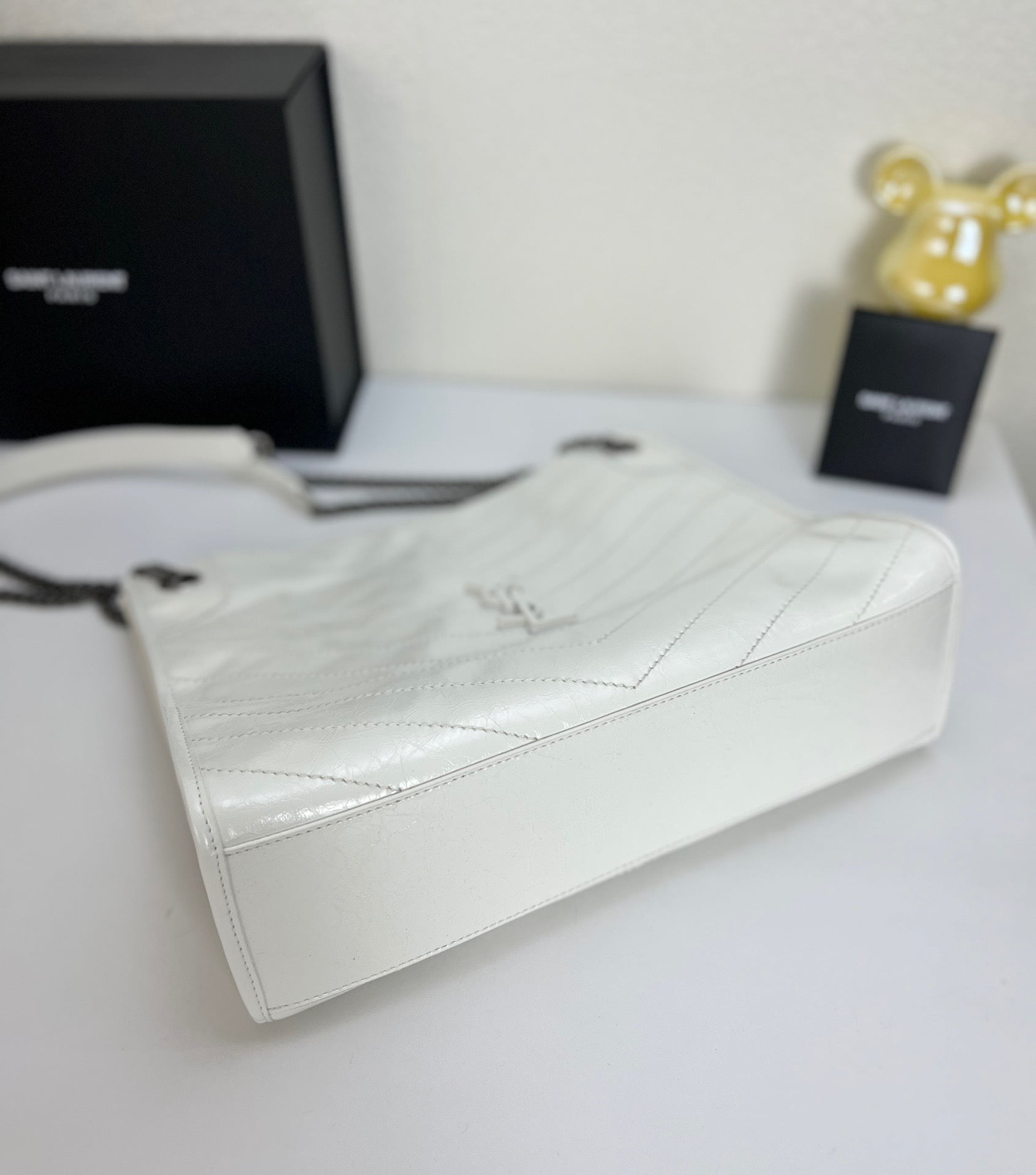 NIKI Shopping Bag Pleated Vintage Oil waxed leather Saint Laurent Tote Bag Upholstered leather-covered YSL initial shoulder Bag 100% calfskin Antique Silver Metal hardware Rolework lining magnetic buckle inside with a zipper pocket