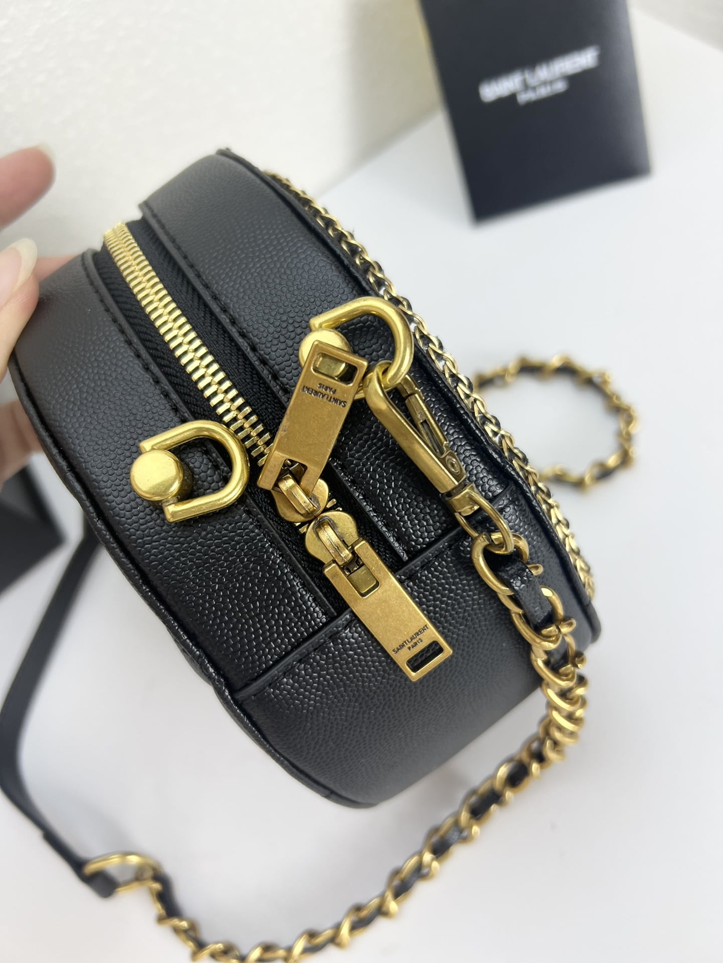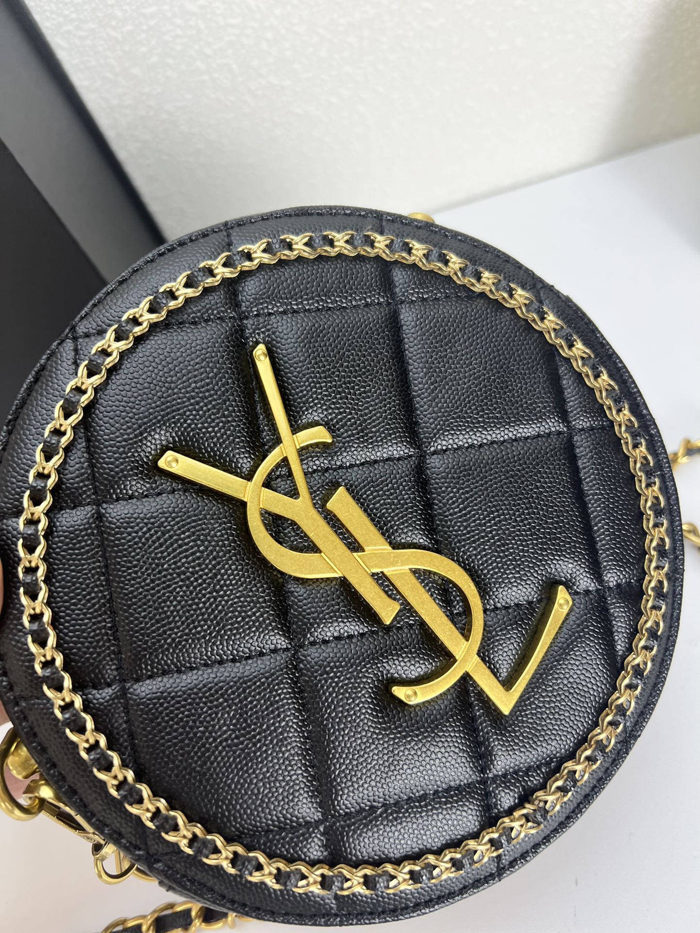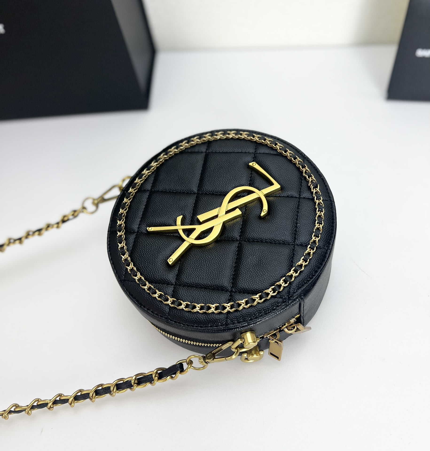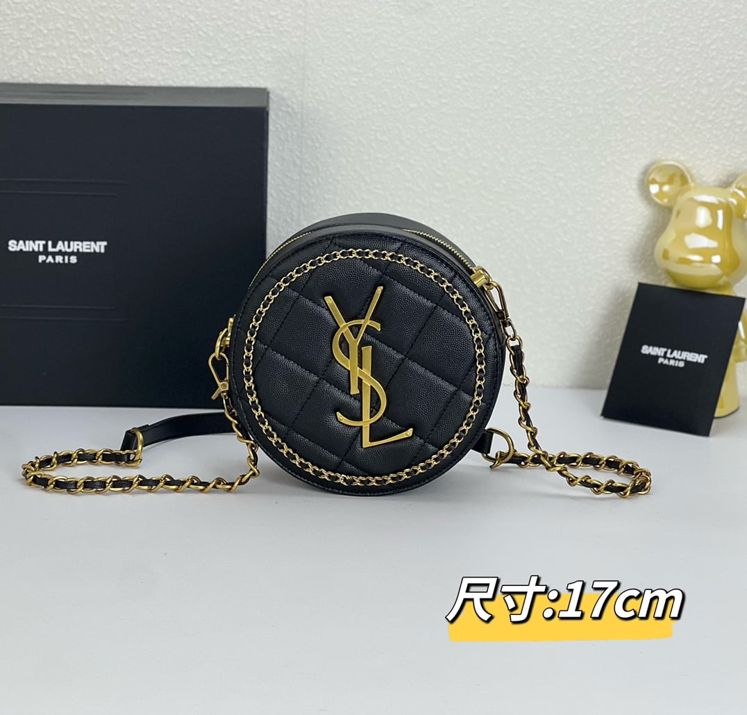YSL round bun bag with chain strap black size: 17cm