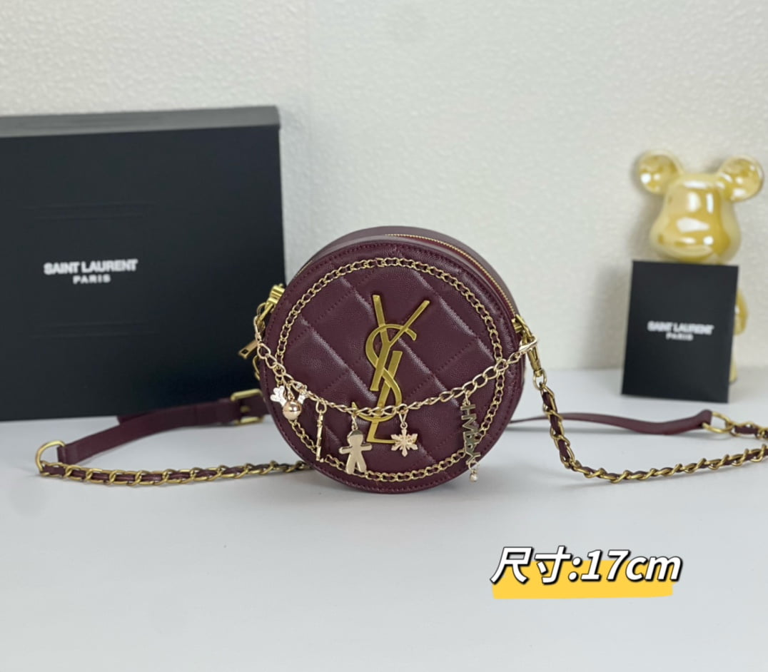 YSL round bun bag with chain strap apricot size: 17cm $138.00