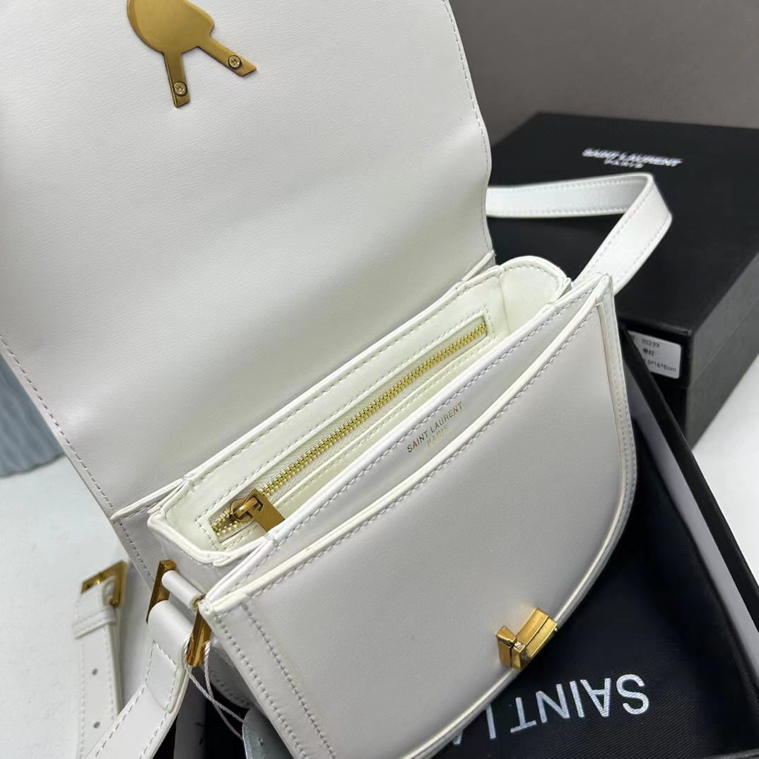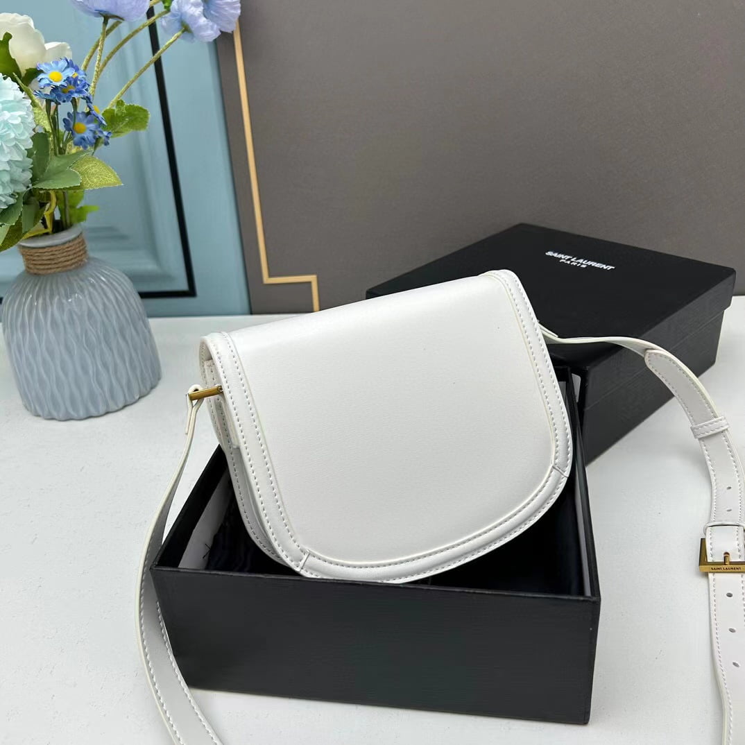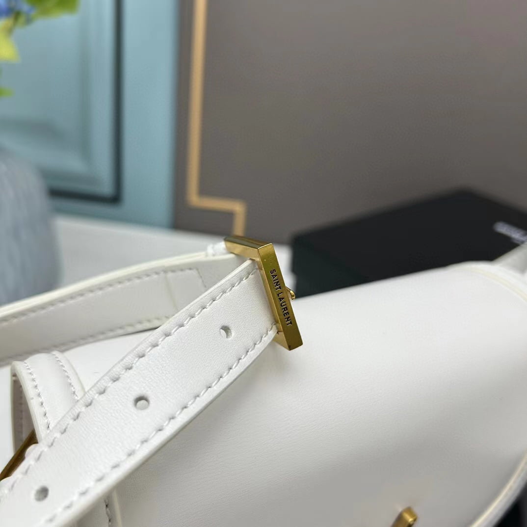 YSL saddle cowhide leather shoulder bag 0233 white size: 19*16*6cm